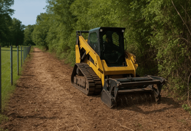 Fence‑clearing cuts back heavy brush, vines, and fallen limbs that swallow a fence line and make it tough to manage your property. It opens the ground up so you’ve got clear access, a clean boundary you can actually see, and a fence that isn’t being twisted or torn apart by overgrowth. Clearing that strip also knocks down fire hazards, keeps pests and invasive plants from creeping in, and gives you a solid, workable line you can patrol, repair, or rebuild without fighting through a wall of brush.